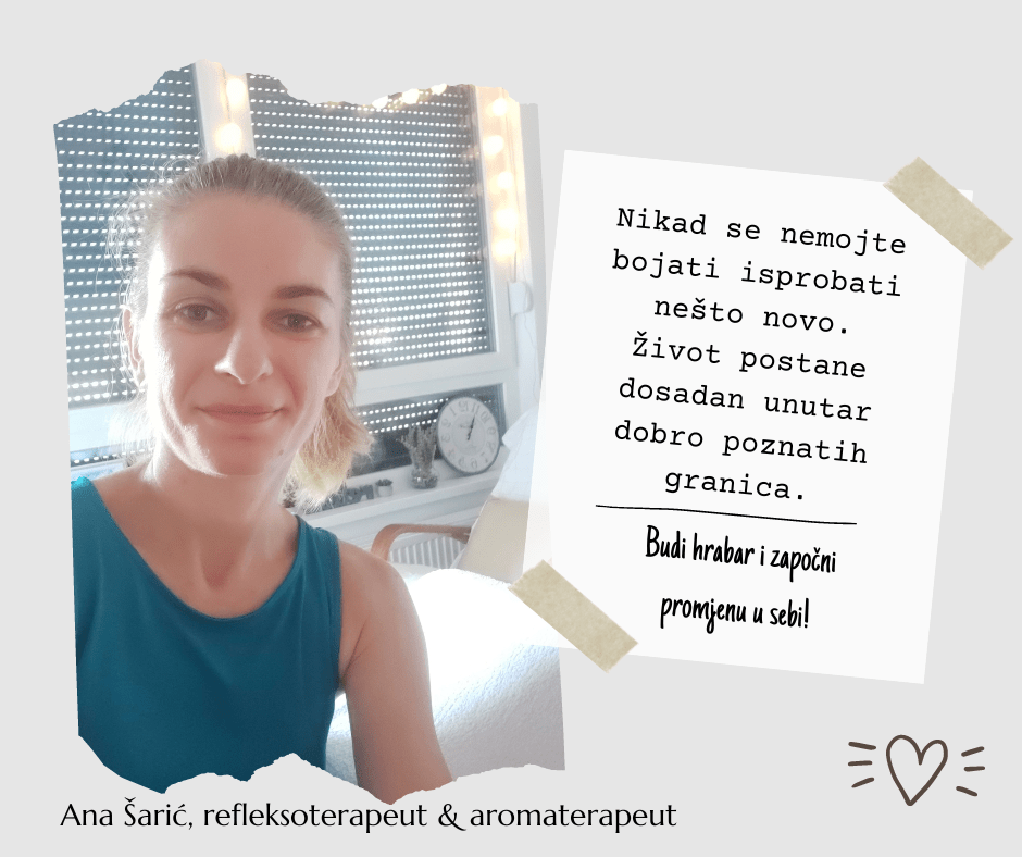 Ja sam Ana Šarić. Školovani sam refleksoterapeut i aromaterapeut.
